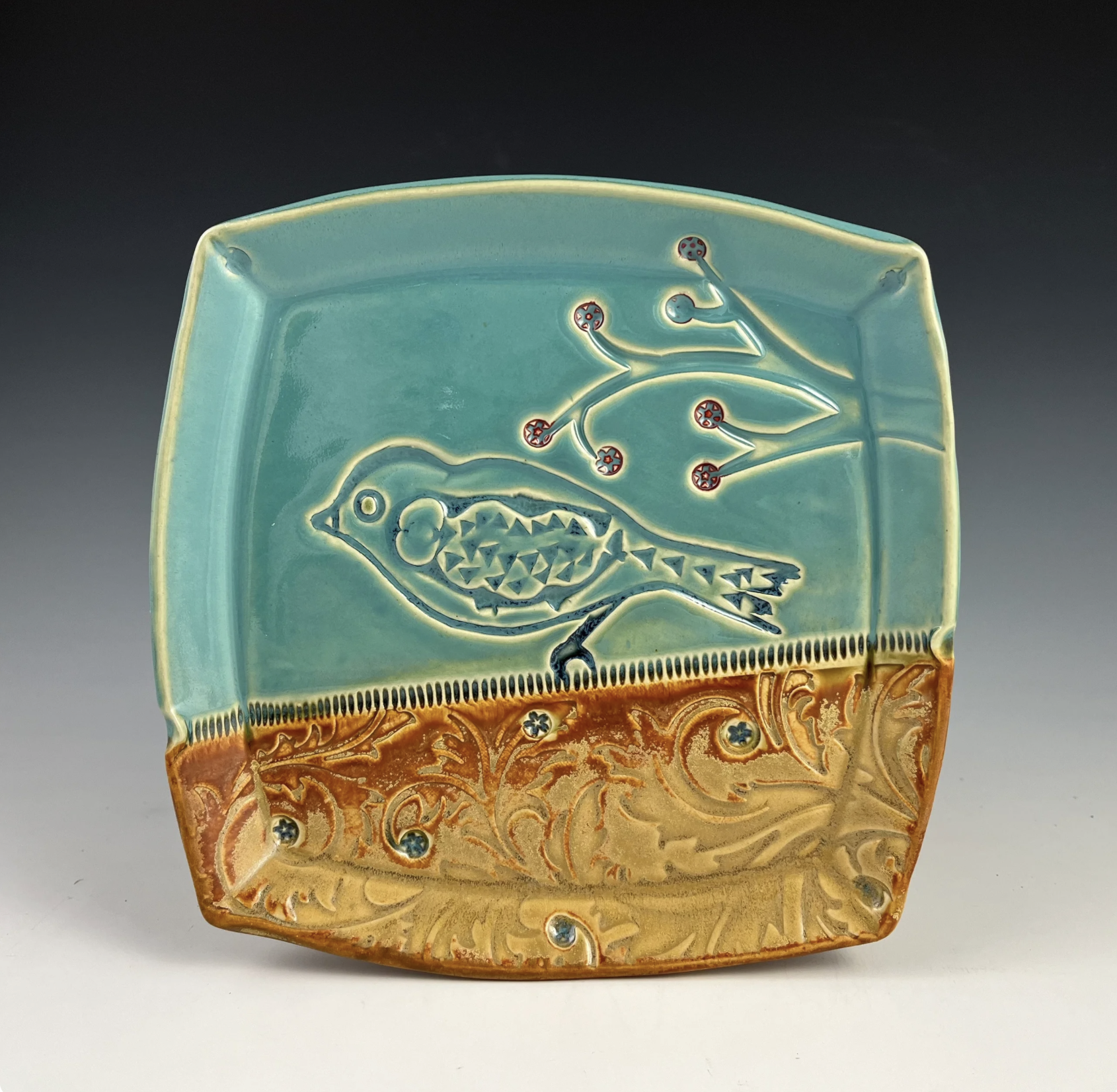 Patricia Herzog has been working as a studio potter since graduating from the University of Tennessee in 1978 with a Master of Science Degree in Ceramics. Her recent hand built functional work reflects her passion for color, texture, animal imagery, and universal patterns in nature. She uses a white stoneware that is fired in an electric kiln to approximately 2200 degrees. She is a long time member of the Southern Highland Craft Guild and a founding member of Terra Madre, Women in Clay.